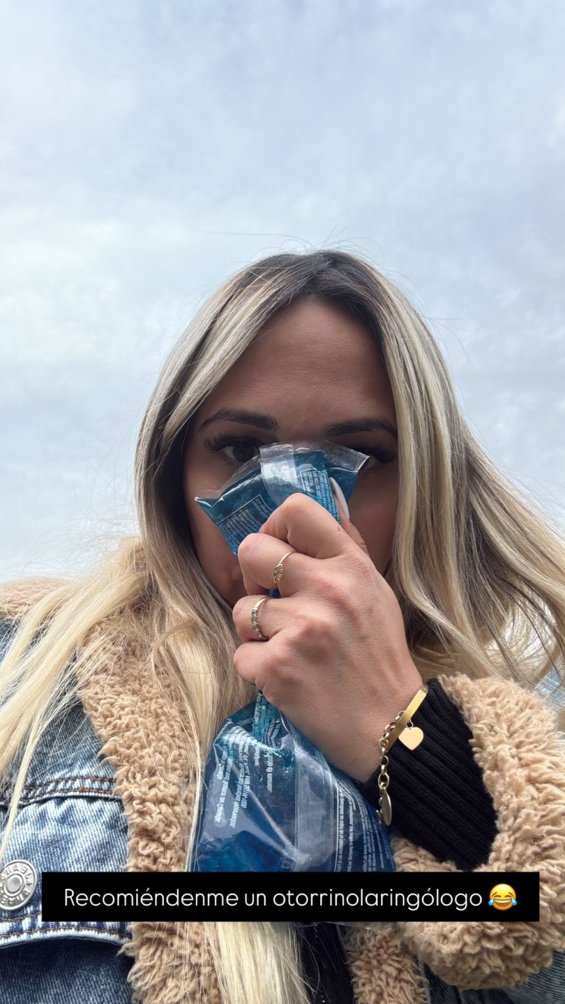 "Ríete, miren, Nano me fracturó la nariz. Voy a dejar esta prueba ahora porque ahora me va a tener que operar la nariz", expresó Rebeca en Instagram mientras utilizaba una compresa de frío para desinflamar la zona.