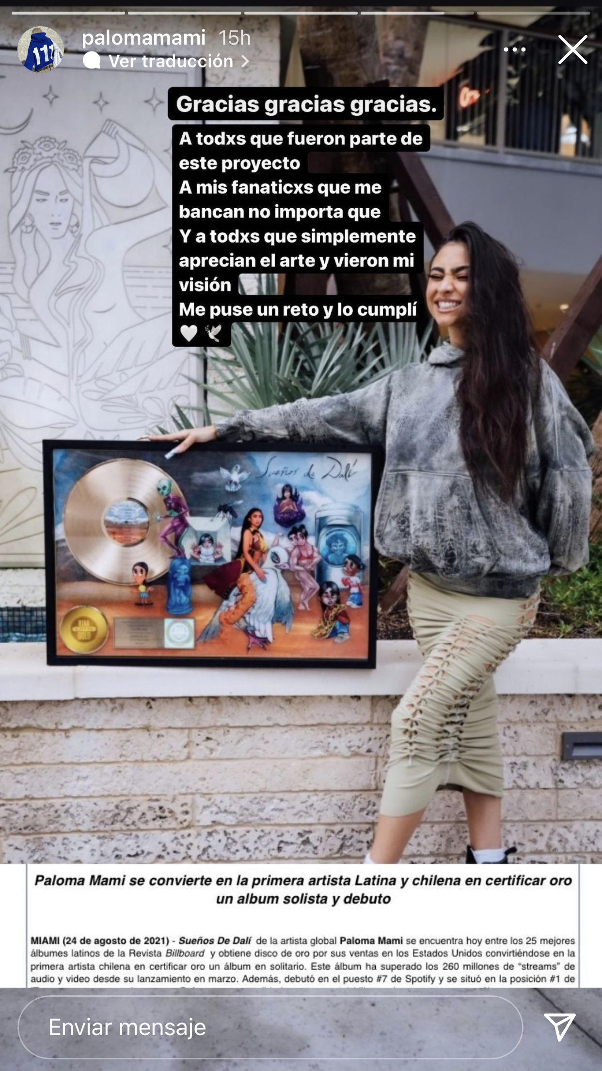 Paloma Mami celebró a través de sus redes sociales un importante logro para su carrera: su álbum debut Sueños de Dalí obtuvo disco de oro por sus ventas en Estados Unidos.
