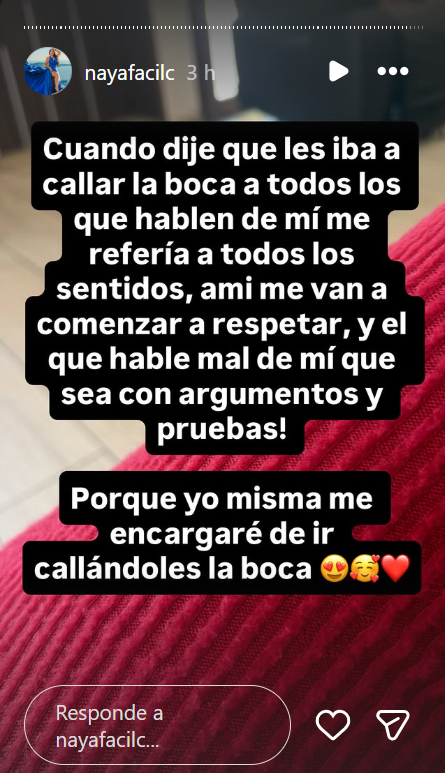 Acto seguido, la influencer arremetió contra quienes la critican: "Cuando dije que les iba a callar la boca a todos los que hablen de mí, me refería a todos los sentidos. A mí me van a comenzar a respetar, y el que hable mal de mí ¡Que sea con argumentos y pruebas! Porque yo misma me encargaré de ir callándoles la boca".