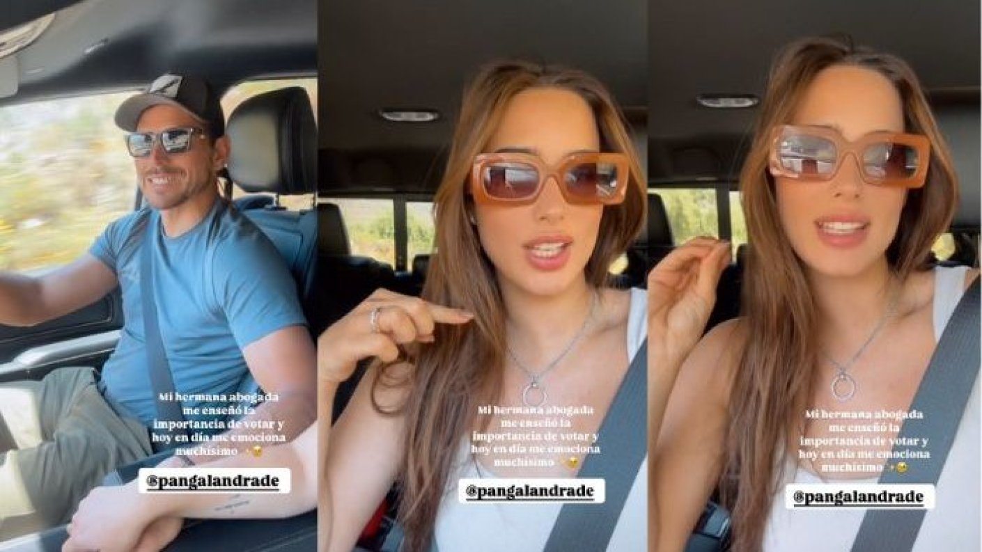 "Estamos en camino a votar por aquí", comenzó en una storie de Instagram enfocando a Pangal, quien iba manejando.