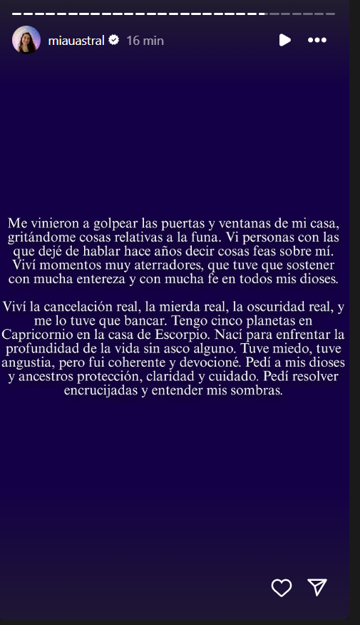 La astróloga utilizó sus redes sociales para hablar nuevamente sobre los cuestionamientos y el hostigamiento que ha recibido tras perder el caso en tribunales.