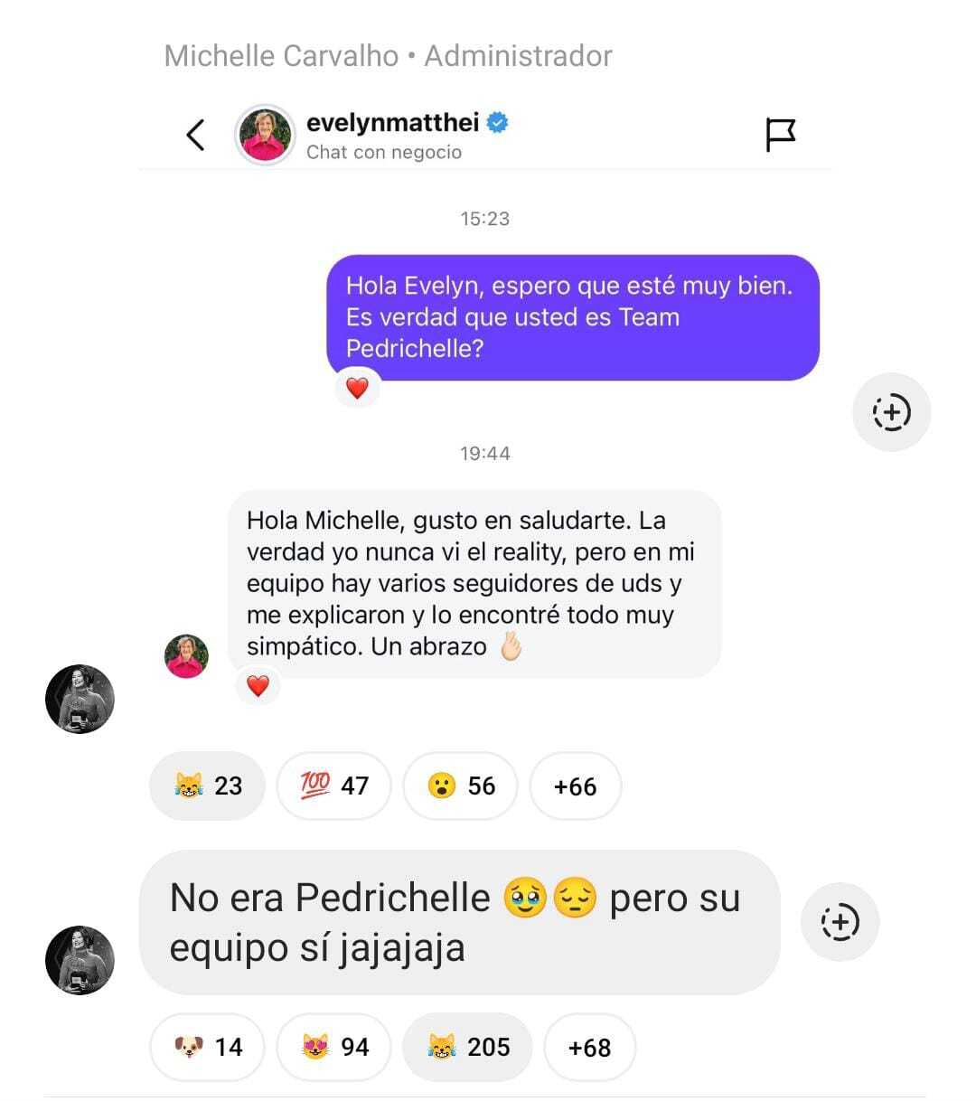 Finalmente, Michelle reaccionó diciendo "no era Pedrichelle, pero su equipo sí jajajaja".