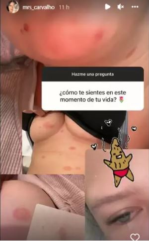 La influencer publicó en sus stories una serie de imágenes de su cuerpo en el que aparecen manchas rojizas. Cuando le consultaron qué le sucedió, sus respuestas alertaron más a sus seguidores.
