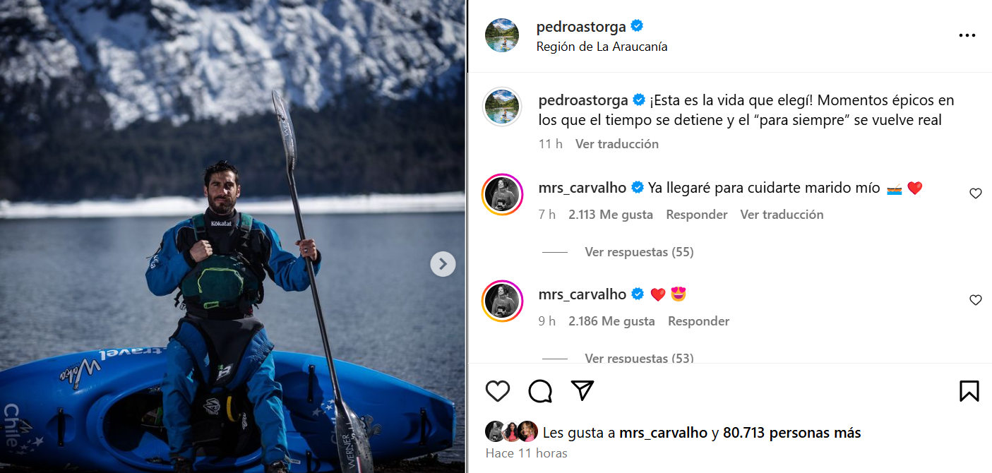 Michelle Carvalho dejó un tierno mensaje de apoyo a su amigo Pedro Astorga, quien sufrió un feo accidente en una de sus manos tras andar en kayak en Pucón.
