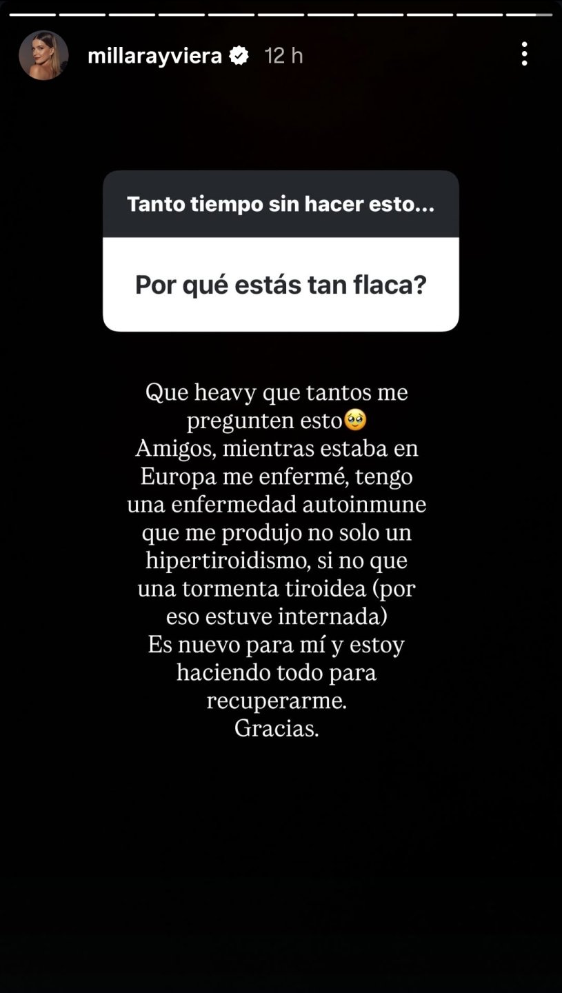 Según explicó la propia Millaray Viera “mientras estaba en Europa me enfermé, tengo una enfermedad autoinmune”.