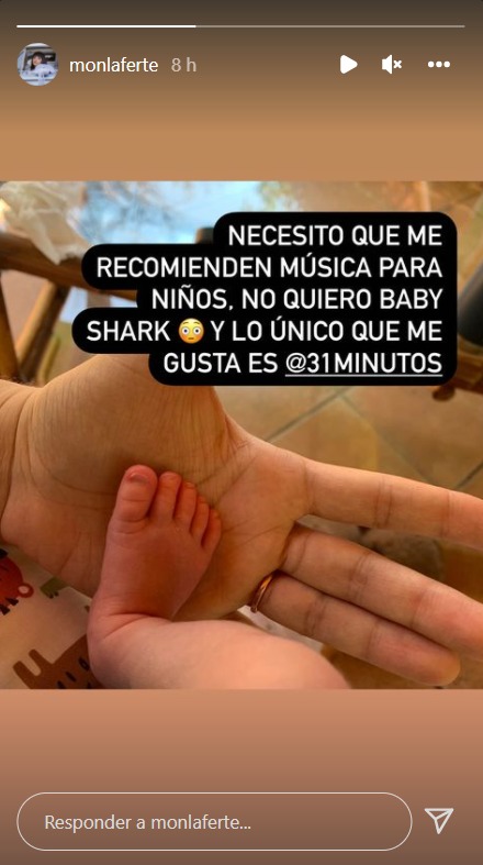 A través de sus stories en Instagram, la cantante nacional radicada en México compartió un nuevo y tierno registro de su hijo Joel, foto que acompañó con una especial petición para todos sus seguidores: música para niños.