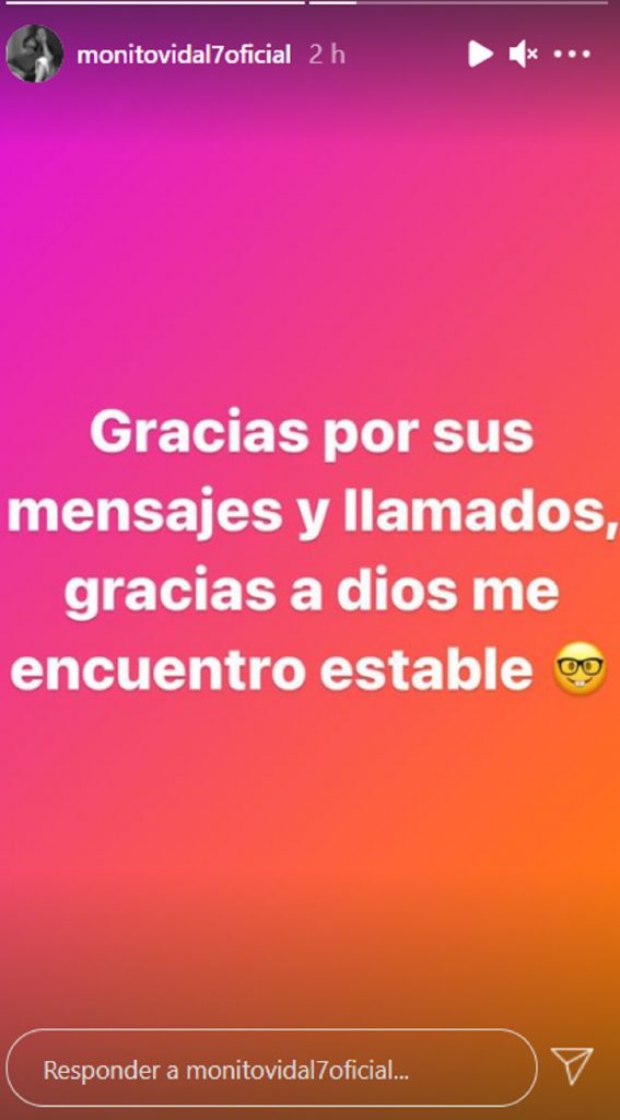 En la misma red social, el hijo de Vidal escribió un mensaje para tranquilizar a sus fans. "Gracias por sus mensajes y llamados, gracias a Dios me encuentro estable", señaló.