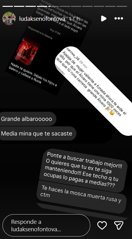 “Grande Álvaro, media mina que te sacaste”, “de mujer valiente a funada ahora”, “ponte a buscar trabajo mejor o quieres que tu ex te siga manteniendo. ¿Ese techo que ocupas lo pagas a medias? Te haces la mosca muerta”, fueron algunos de los mensajes que recibió.