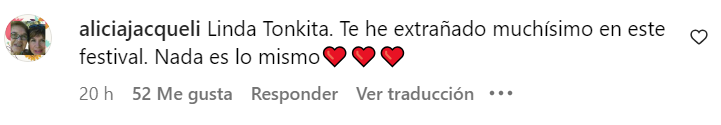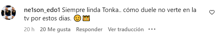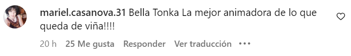 "Se te echa de menos en el Festival y en la televisión chilena, te amo", "Linda Tonkita. Te he extrañado muchísimo en este Festival. Nada es lo mismo", "Bella Tonka, la mejor animadora de lo que queda de Viña", "Siempre linda Tonka... cómo duele no verte en la TV por estos días", expresaron algunos cibernautas. Comentarios que nacen tras las dos primeras noches del Festival de Viña 2024 bajo la conducción de María Luisa Godoy y Pancho Saavedra, animación que ha sido fuertemente criticada en redes sociales, siendo la más reciente durante el término de el show de Andrea Bocelli y la complicada rutina de Javiera Contador.