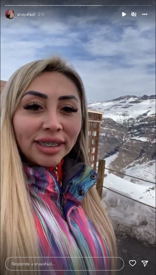 A través de su cuenta de Instagram, la influencer comentó su emoción por ver el blanco paisaje de Valle Nevado, aunque reconoció que le atemoriza esquiar.