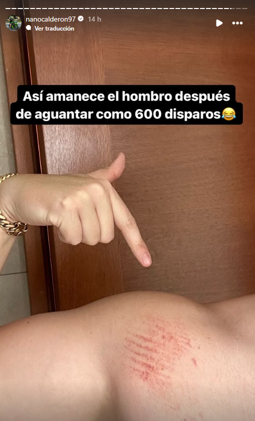 Ya de regreso en Chile, Nano compartió una foto donde aparece su hombro con varios rasguños. "Así amanece el hombro después de aguantar como 600 disparos", señaló.