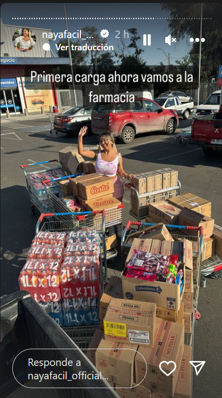 Con el dinero reunido partió a supermercados mayoristas y a una farmacia para comprar botellas de agua, alimentos, pañales, útiles de aseo, comida para mascotas y medicamentos que tendrán como destino la Región de Valparaíso. Naya Fácil- InstagramNaya Fácil - Instagram