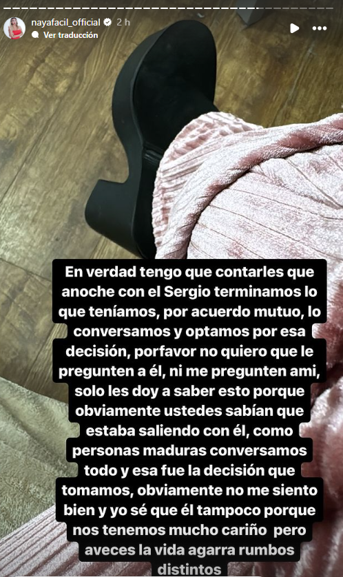 Naya Fácil no está viviendo un buen momento emocional y así lo compartió con sus seguidores en Instagram al revelarles el término de su relación con Sergio Narchi.