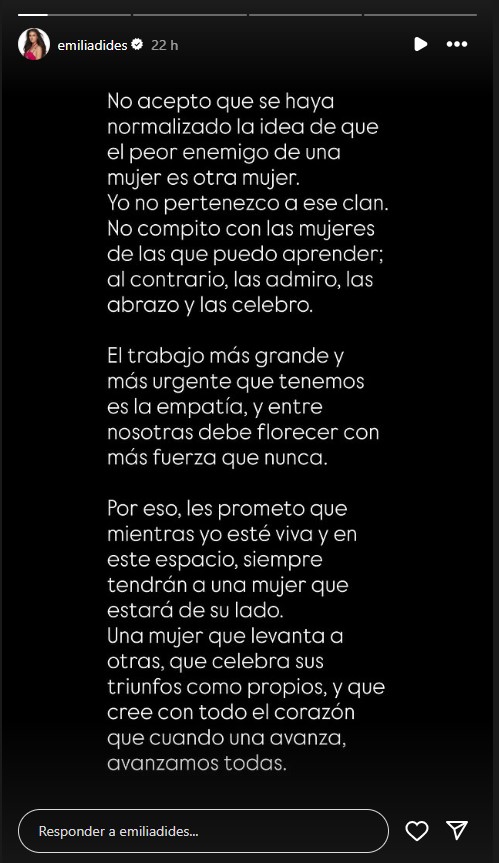 “No acepto que se haya normalizado la idea de que el peor enemigo de una mujer es otra mujer. Yo no pertenezco a ese clan”, partió señalando.