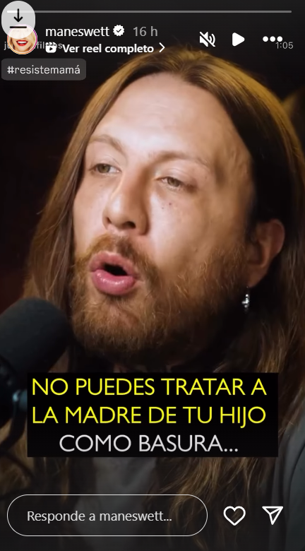 "Si no respetas a la madre no respetas a tu hijo y, por lo tanto, no deberías tener acceso a él (...) Si no puedes hacer eso no eres un padre, solo eres otro problema", concluye el registro que luego Mane Swett adjuntó en sus historias destacadas.