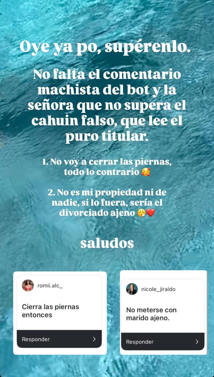 Al respecto, Daniela Pérez contestó: "Oye ya po', supérenlo. No falta el comentario machista del bot y la señora que no supera el cahuín falso, que lee el puro titular".