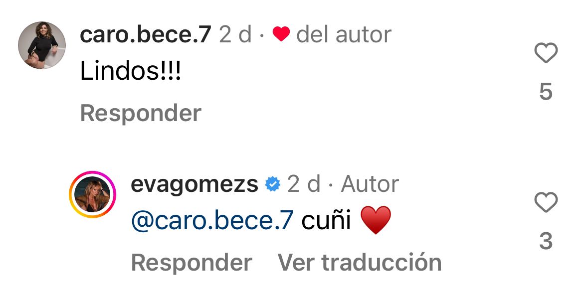 "Somos amigos desde hace años", precisó la animadora, que no aclaró ese hecho en la publicación de su cuenta de Instagram e incluso respondió al comentario de la hermana de Becerra con un "cuñi".