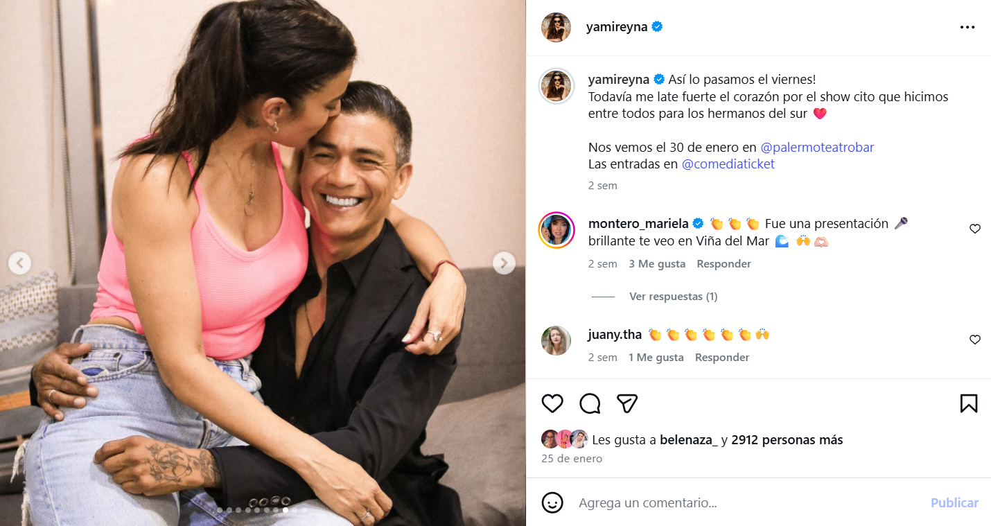 La última publicación de Yamila en su cuenta de Instagram, muestra un recuento de lo que fue dicho fin de semana, donde ella animó el festival en cuestión y Américo formó parte de la parrilla.