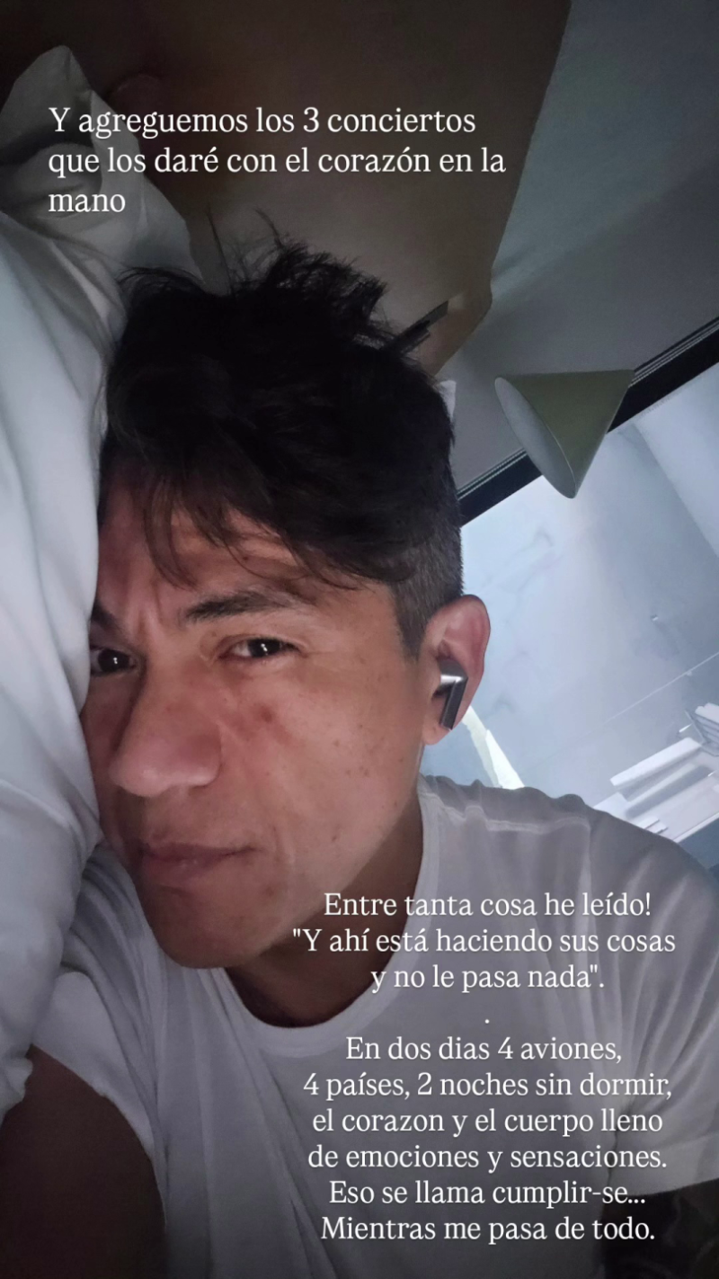 "Eso se llama cumplir-se... mientras me pasa de todo", sinceró el artista en la red social. "Y agreguemos los tres conciertos que los daré con el corazón en la mano", complementó.