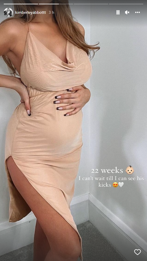 En esta oportunidad, la modelo de 22 años compartió una tierna historia en la que aparece con un vestido beige y en la que indicó que ya cumplió las 22 semanas.