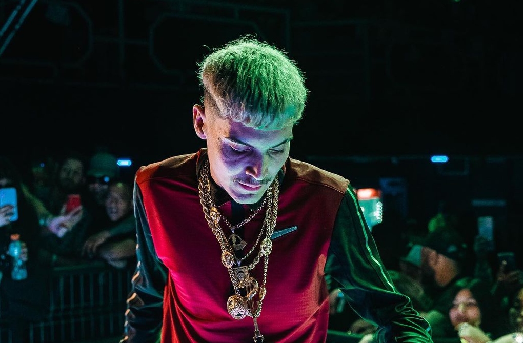 Pasadas las 16:00 horas de este viernes, el artista chileno más escuchado en 2021 apareció por primera vez tras subirse al escenario para acompañar a Harry Nach en su éxito ¿Por qué te enojai?, cuyo videoclip cuenta con más de 15 millones de vistas en YouTube.