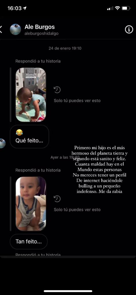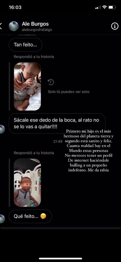 "Tan feito", "Que feito", le comentaba la usuaria a la modelo. Silva subió a sus historias los mensajes recibidos y fue contundente: "mi hijo es el más hermoso del planeta tierra y está sanito y feliz".