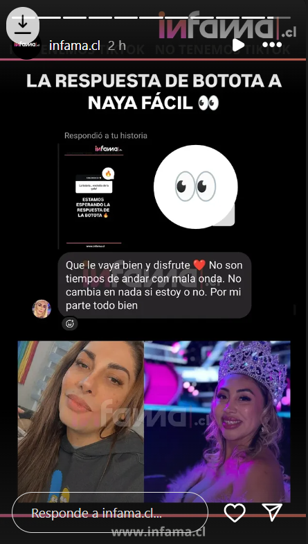 Esto, debido a que durante su piscinazo como embajadora del Festival de Viña 2024, Botota se burló de ella y aunque ofreció disculpas públicas, Naya no las aceptó, dado que no se las dio a ella en privado.