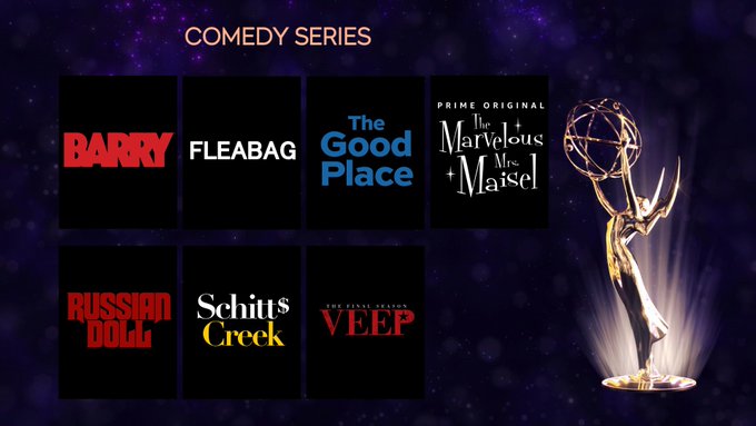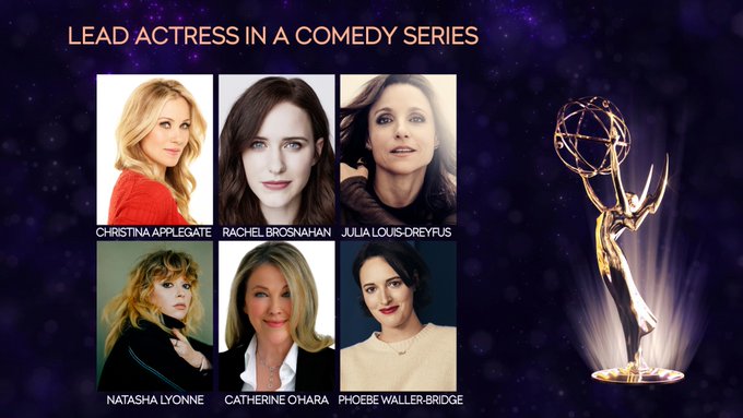 En tanto que la ganadora como Mejor serie de Comedia 2018, The Marvelous Mrs. Maisel, lidera la categoría con 20 nominaciones, incluyendo una para su protagonista, Rachel Brosnahan, quien el año pasado tambien reinó como Mejor Actriz.