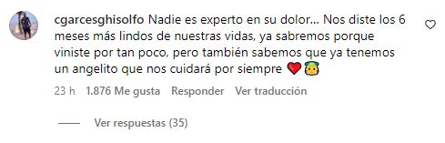 Carlos Garcés decidió realizar un comentario en el post de la comunicadora donde dio a conocer esta triste noticia por la muerte de su guagua. En un escueto escrito, manifestó que "ya tenemos un angelito que nos cuidará por siempre".
