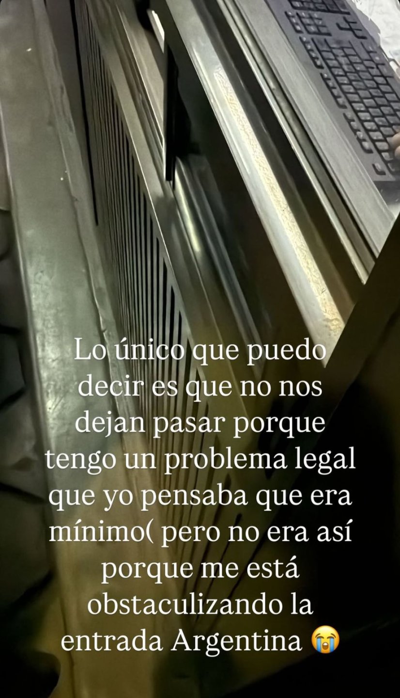 "Lo único que puedo decir es que no nos dejan pasar porque tengo un problema legal que yo pensaba que era mínimo, pero no era así porque me está obstaculizando la entrada a Argentina", expresó Naya en su cuenta de Instagram.