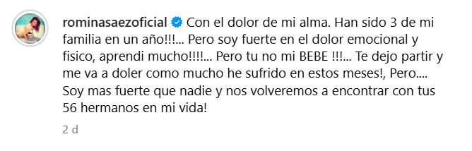 "Esta es la peor parte que nos toca. Deberían ser eternos", "qué tristeza. Te abrazo a la distancia", "hasta luego, Canelita" y "un abrazo lleno de luz, mi Romi querida", son algunos de los comentarios que dejaron los usuarios en la publicación.