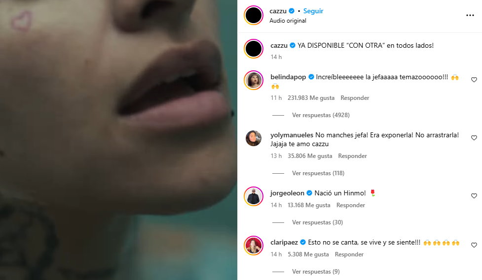 Incluso, la cantante Belinda, quien también fue pareja de Christian Nodal, escribió: "Increíbleeeeeee la jefaaaaa temazoooooo!!!".