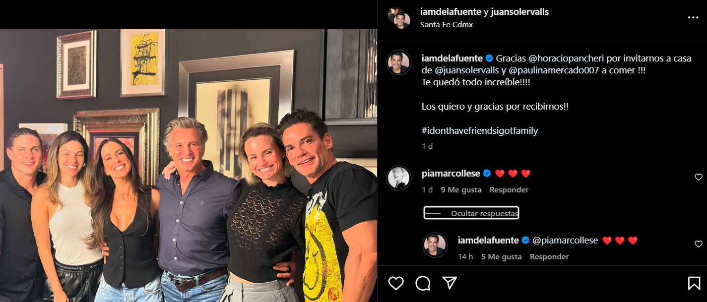 En Instagram, de la Fuente compartió una foto con otras cinco personas, con quienes disfrutó de una comida. A partir de ahí, surgieron las especulaciones, ya que en la imagen se ven tres parejas, y una de ellas estaría compuesta por el chileno y Pía Marcollese.