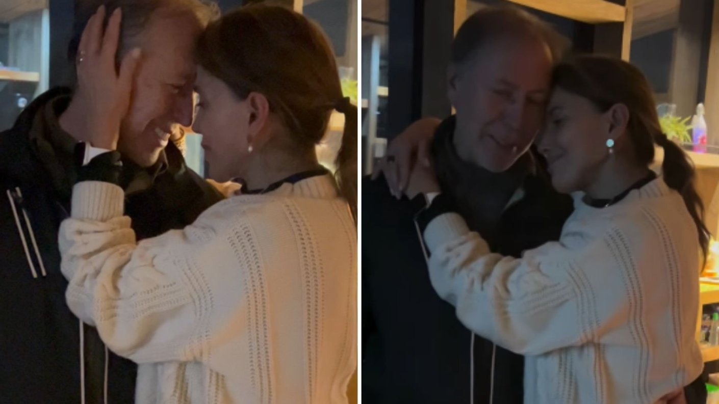 De fondo, se escucha a la pareja cantar la canción "Con los años que me quedan" de Gloria Estefan, mientras Roy abraza a Carolina y ella sujeta el rostro de su esposo entre sus manos.