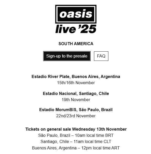 Este martes, Oasis confirmó su regreso a Sudamérica y a nuestro país en noviembre de 2025, en el marco de su tour "Oasis live '25".