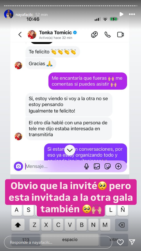 Sin embargo, un detalle que llamó la atención fue el siguiente mensaje, donde Naya le comenta que le confirme su asistencia a La Gala del Pueblo.
