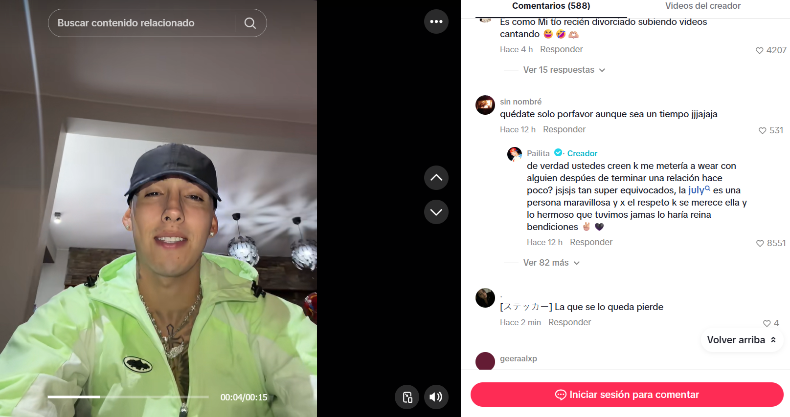 El cantante urbano respondió a un usuario de TikTok que le pedía que se quedara solo por un tiempo.