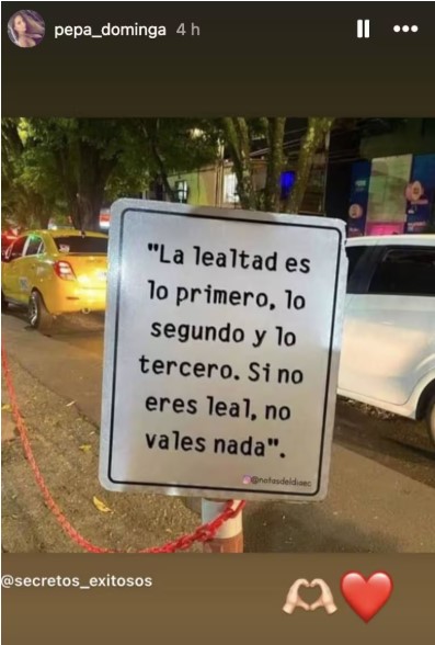 “La lealtad es lo primero, lo segundo y lo tercero. Si no eres leal, no vales nada”, se leía en la publicación de la exmujer del artista.