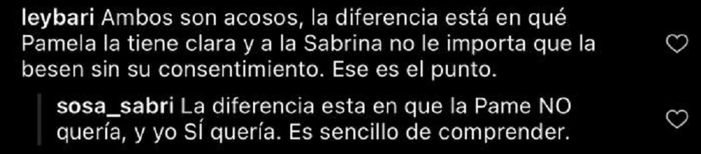 "La diferencia está en que Pame no quería y yo sí quería. Es sencillo de comprender", lanzó la modelo en comentarios de Instagram.