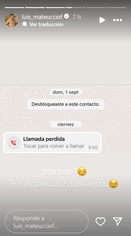 A través de sus historias de Instagram, Luis Mateucci compartió una captura de pantalla de WhatsApp.