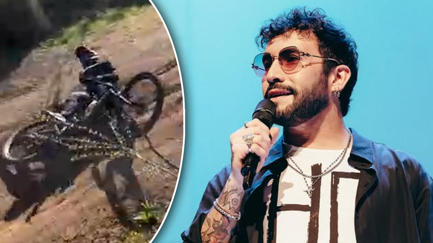 En el registro se observa al comediante perder el control de su bicicleta tras una mala maniobra en uno de los circuitos del Parque Las Palmas, sufriendo una fuerte caída en medio de una curva.