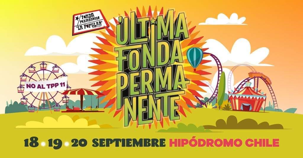 Por si fuera poco, los días 18, 19 y 20 de septiembre se realizará la última versión de la Fonda Permanente, que contará con un cartel generoso en estilos: desde clásicos como Los Tres, Sol y Lluvia, Inti-Illimani Histórico, Quilapayún y el ex Sui Generis, Nito Mestre, también se podrá disfrutar del rock y punk de Los Mox, Los Miserables y Fiskales Ad-Hok, cumbia con la Sonora Dinamita, Organización X, Amar Azul y Hechizo, hasta el pop de Kudai y Supernova.