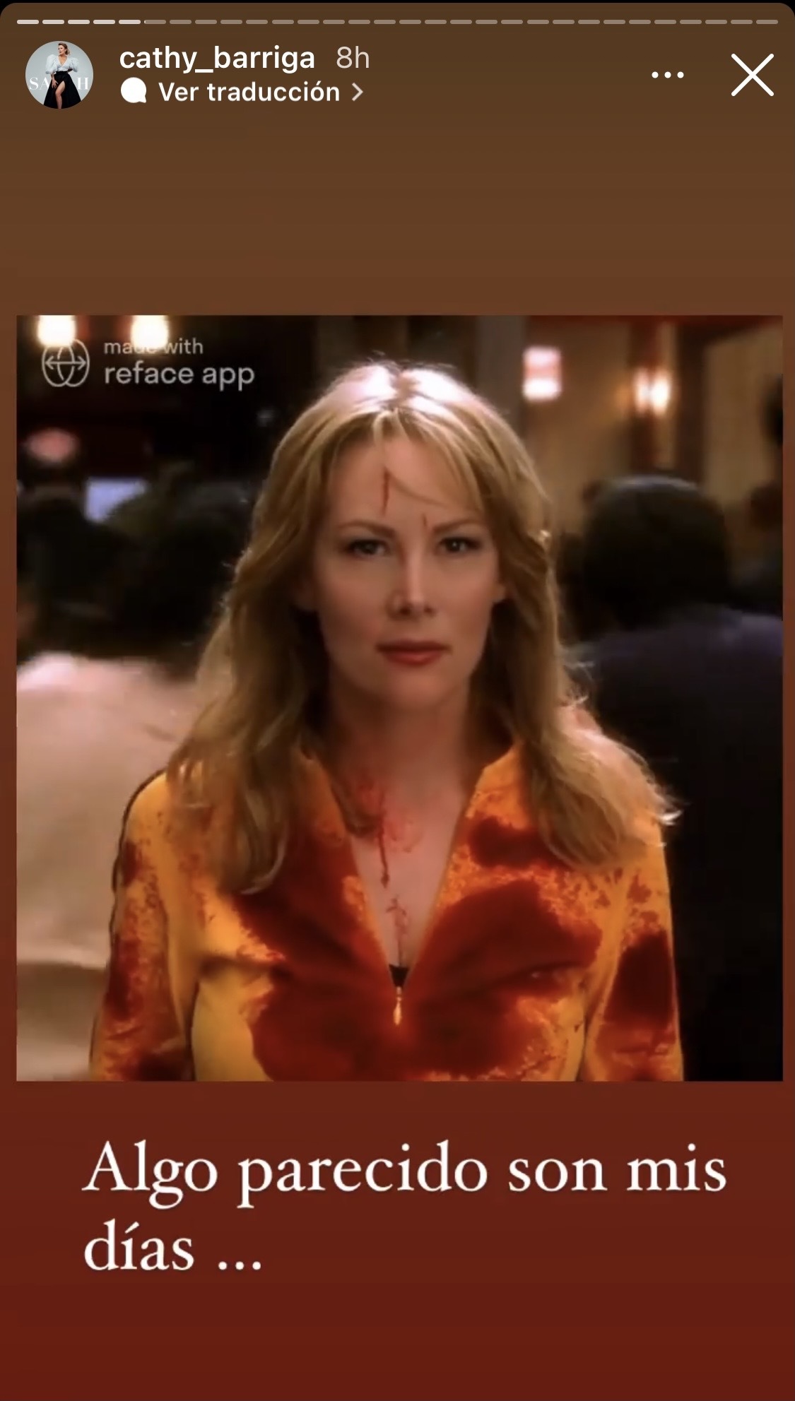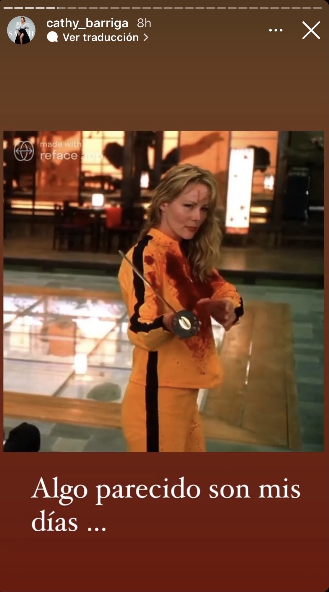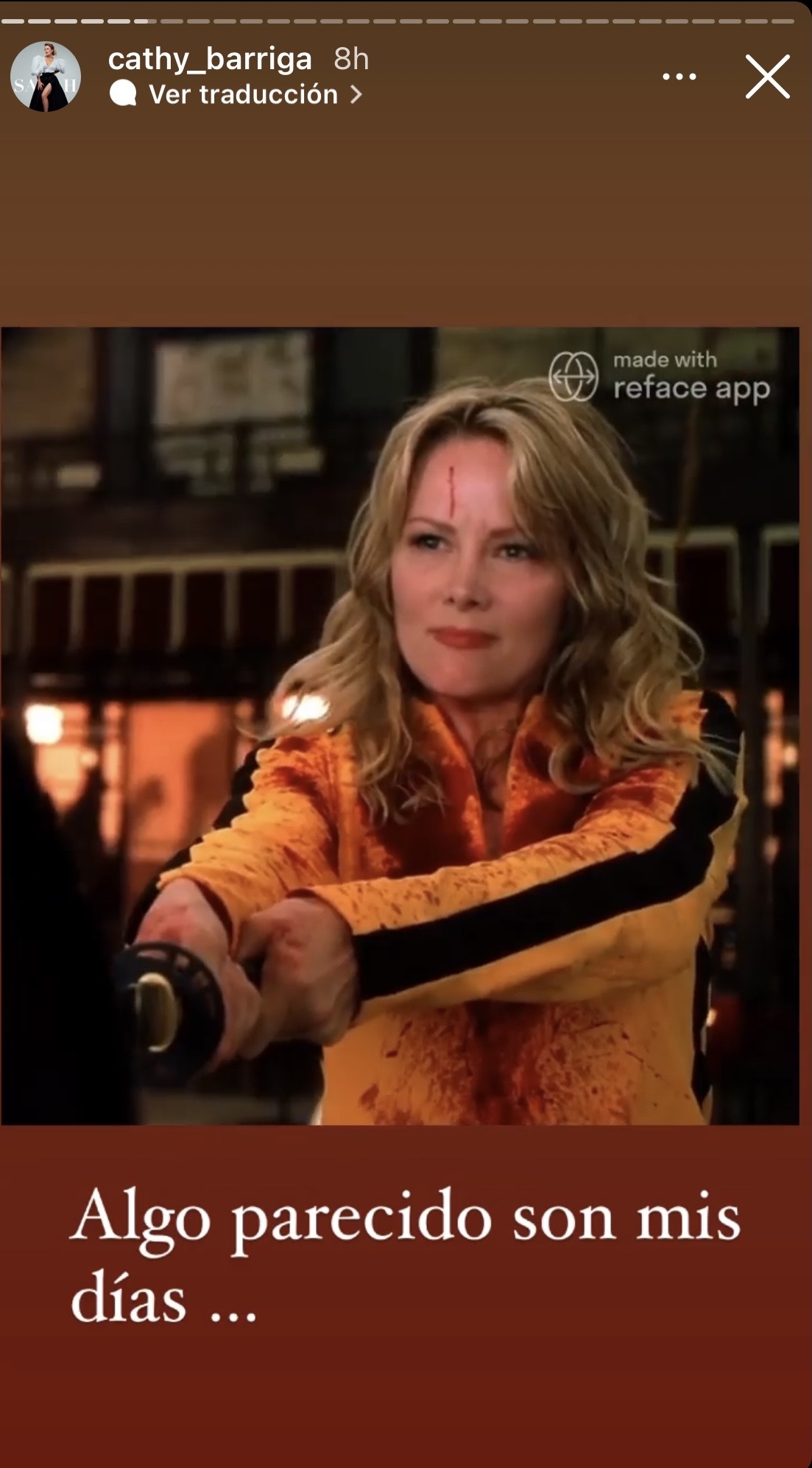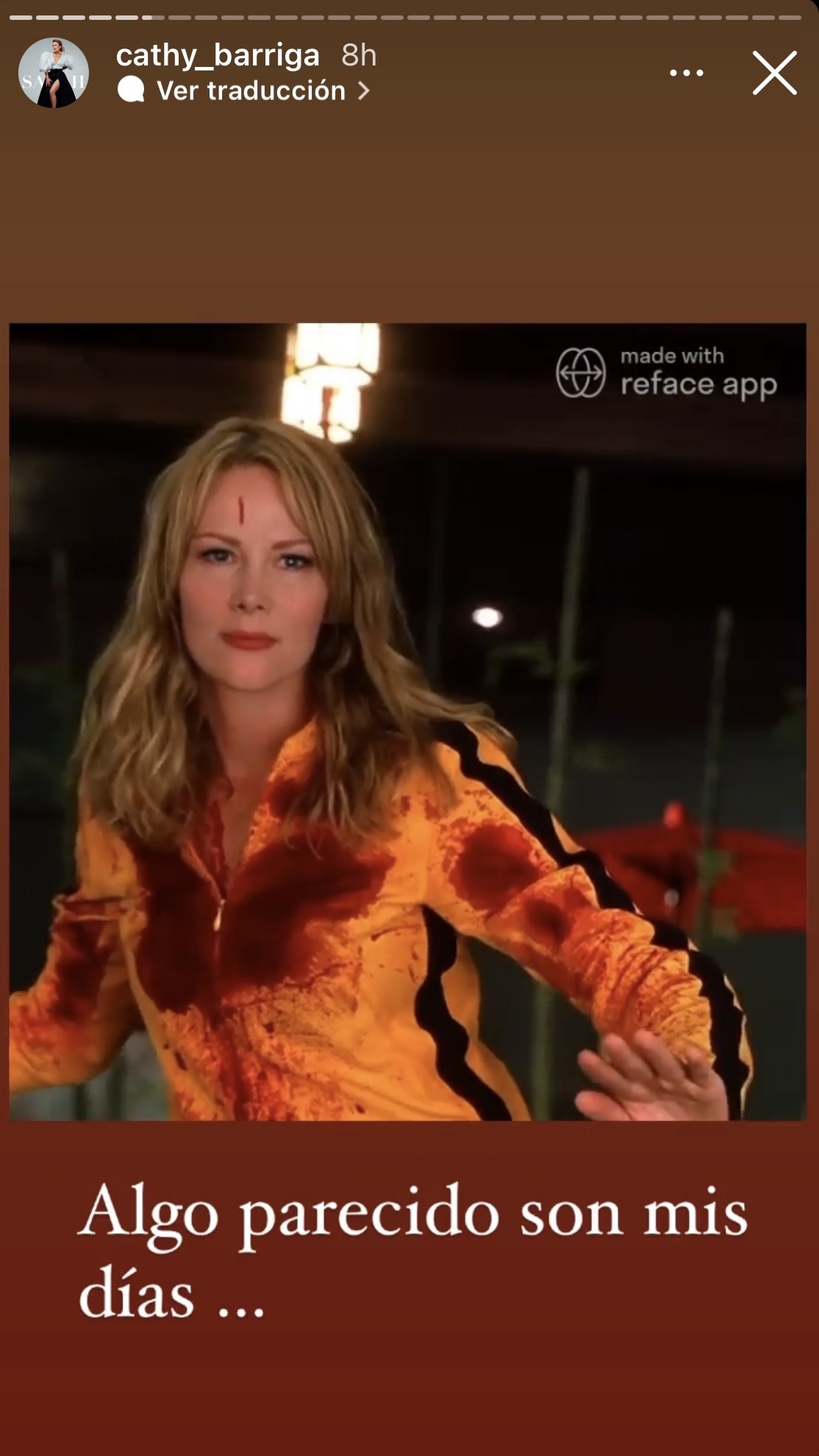 A través de un video basado en la aplicación Reface para redes sociales, Barriga utilizó la plataforma para poner su rostro por sobre el personaje de La novia, protagonista de Kill Bill interpretada por la famosa actriz Uma Thurman.
