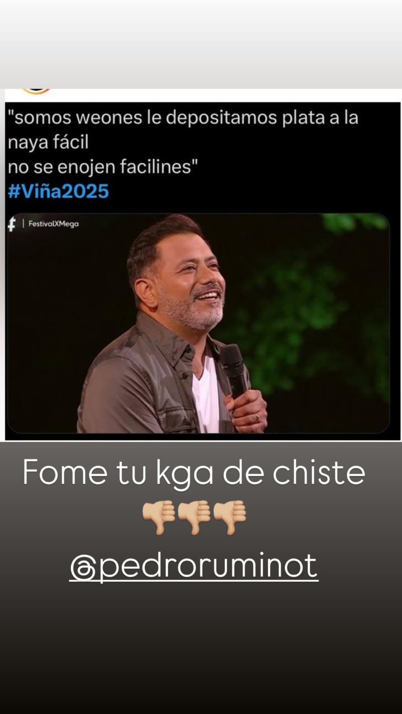 La influencer lapidó al humorista en sus redes sociales, indicando estar "chata" de las polémicas que le trajo ser embajadora de Viña 2024.