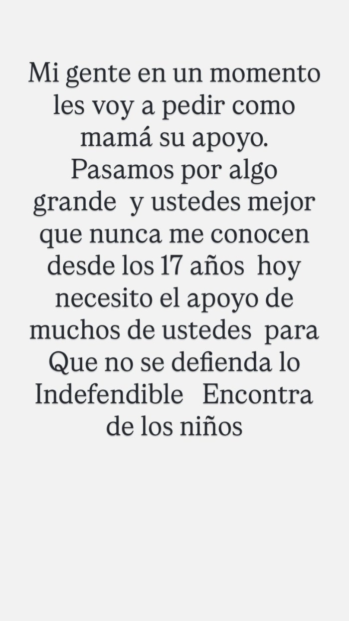 "Mi gente, en un momento les voy a pedir como mamá su apoyo", comenzó diciendo en la plataforma. "Pasamos por algo grande y ustedes mejor que nunca me conocen desde los 17 años", sinceró.