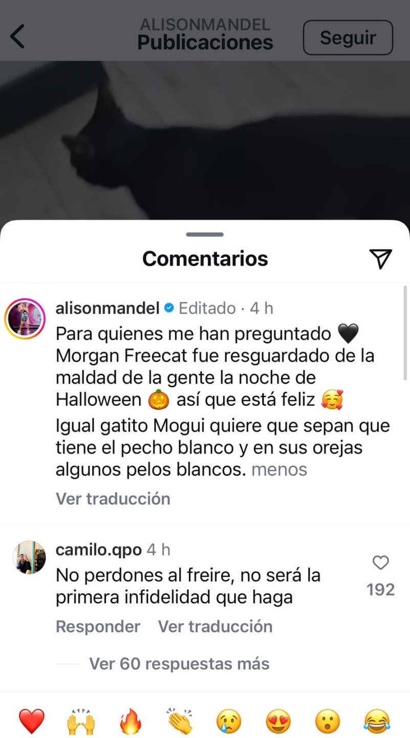 En la última fotografía que subió Alison a su cuenta de Instagram, un internauta comentó: "No perdones al Freire, no será la primera infidelidad que haga".