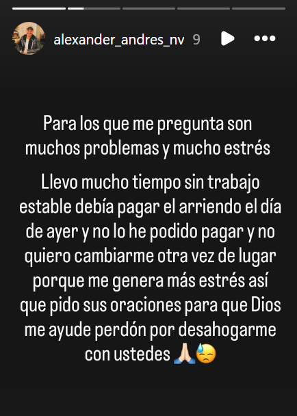 Alexander Núñez, más conocido como Arenito, atravesaría por un complejo momento personal. "Muchos problemas y mucho estrés", expresó en su angustiante descargo.