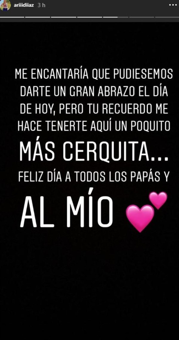 Te puede interesar: Polola de Cangri publicó primeras fotos de su hija: Seguidores destacaron el parecido de la bebé con su padre"Me encantaría que pudiésemos darte un gran abrazo el día de hoy, pero tu recuerdo me hace tenerte aquí un poquito más cerquita. Feliz día a todos los papás y al mío", escribió en Araceli.