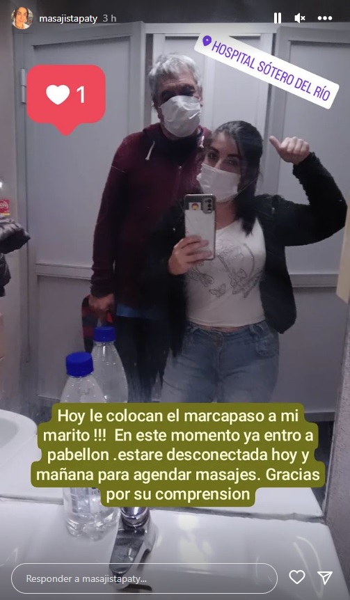 "¡Hoy le colocan el marcapasos a mi Marito! En este momento ya entró a pabellón. Estaré desconectada hoy y mañana para agendar masajes. Gracias por su comprensión", escribió brevemente la masajista en sus historias de Instagram.