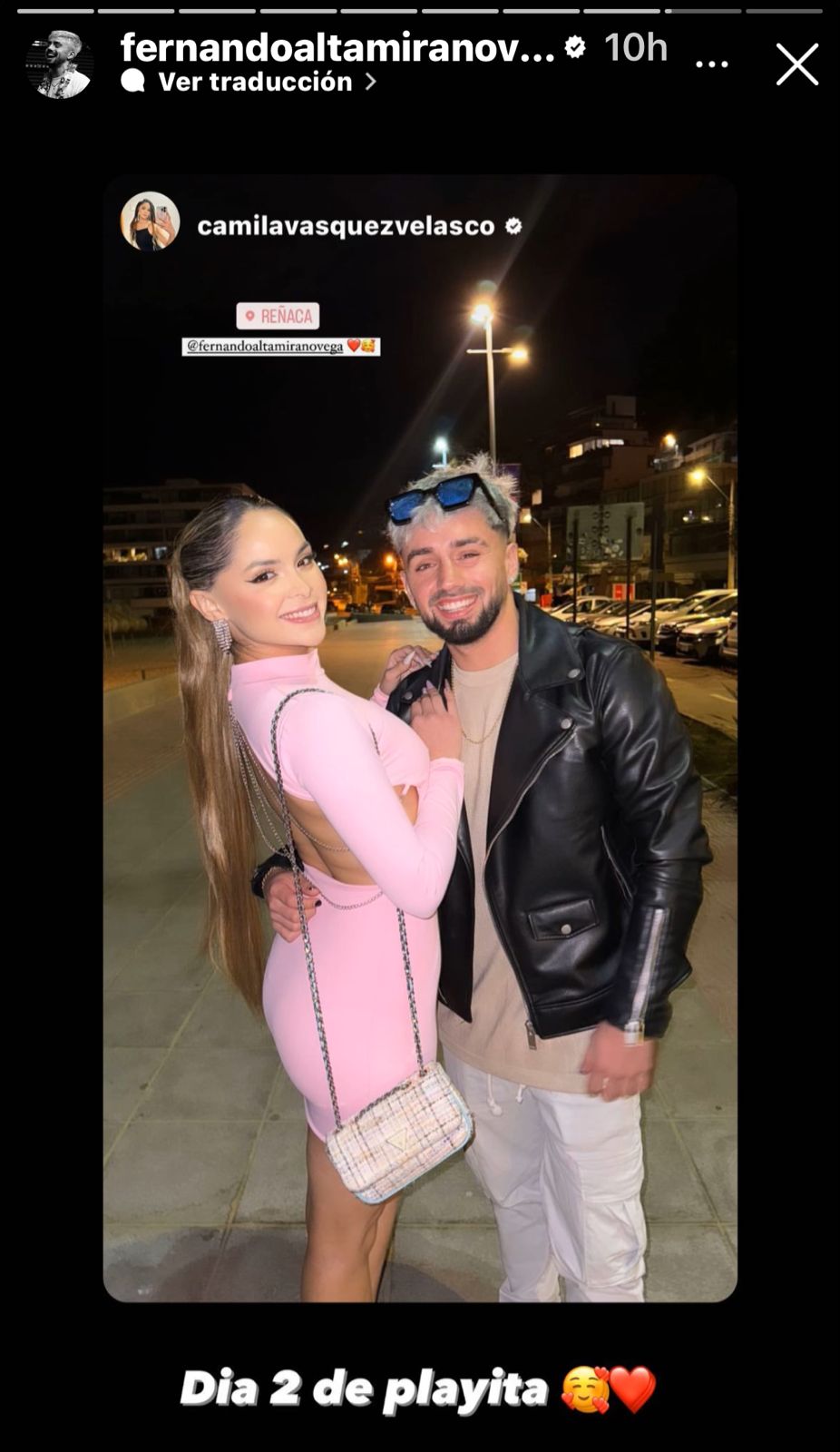 Fernando Altamirano publicó una foto en su cuenta de Instagram, donde aparece en una playa de Reñaca durante la noche, abrazado junto a Camila Vásquez Velasco, quien se hizo conocida por su participación en el programa de talentos "Rojo". La pareja estaría de vacaciones en el lugar, puesto que Camila publicó una imagen de ambos durante la madrugada, la que fue reposteada por Bambino, quien agregó la descripción: "Día 2 de playita". Ambos se encuentran en la región en compañía de unos amigos y no han perdido oportunidad para declarar su amor. En los últimos días, publicaron una foto en sus historias de Instagram con la descripción: "Te quiero mucho". Aunque ninguno de los dos se ha referido públicamente al tema, hace unos días se mostraron en una fiesta abrazados frente a un espejo y posteriormente Bambino presumió un baile de Camila en sus historias de Instagram.